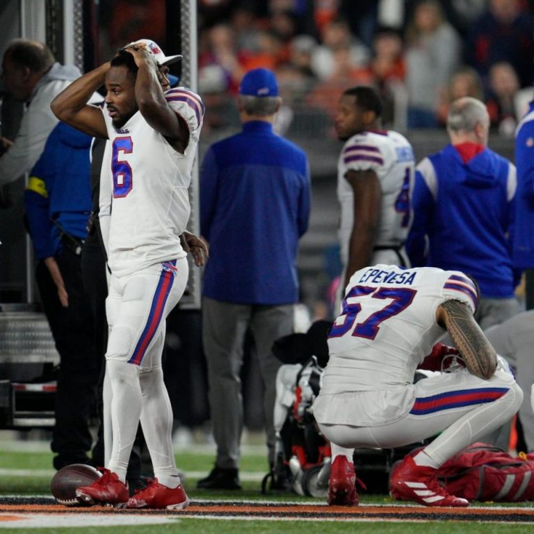 Cameras showed the two coaches meeting once again in the stadium’s tunnel (and passed a cell phone between each other) and players began coming out of the Bills’ locker room. Bengals captains Joe Burrow, DJ Reader, Ted Karras and Joe Mixon went toward the locker room as well. Before the official announcement from the league, the Bills’ equipment staff began packing up the sideline. Finally, at 10 p.m. ET — one hour and five minutes after Hamlin collapsed — the game was called.