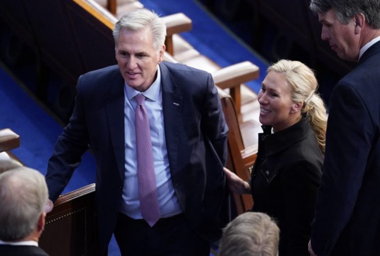 It is not unusual for the GOP conference to raise money for campaigns when conference members meet at the Republican National Committee building, as they did Tuesday. Rank-and-file members are asked to donate what are essentially leftover campaign funds to the House GOP’s campaign arm. Greene, who easily won reelection to her second term in November, will transfer the $100,000 from her campaign account to the National Republican Campaign Committee.