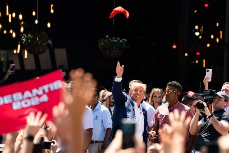 When Trump got to the pork tent midday — with DeSantis’s camp far away and resting in the shade — he didn’t partake in the actual grilling and brought an entourage of supportive lawmakers from DeSantis’s home state. They posed for selfies and passed out Make America Great Again hats to a crowd that clogged the fair’s grand concourse.