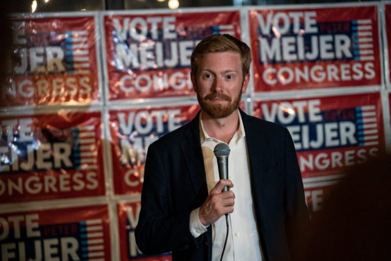 Meijer, whose family founded the Meijer supermarket chain, is a business analyst and former U.S. Army reservist who served one term in the House of Representatives. He was one of 10 House Republicans who voted to impeach President Donald Trump in 2021. Meijer was defeated in his 2022 GOP primary by John Gibbs — a former Trump administration official who ran with the ex-president’s support and embraced his false claims of a stolen election. Gibbs was defeated in the general election by Hillary J. Scholten (D).