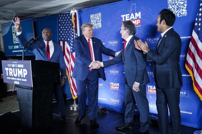 Trump reached for that impression of unity and finality by concluding his campaign here Monday alongside his former rivals turned allies. Also-rans Sen. Tim Scott (R-S.C.), North Dakota Gov. Doug Burgum and entrepreneur Vivek Ramaswamy joined him onstage in a demonstration of how the field has rapidly consolidated behind him. The barbs they traded were instantly buried — Ramaswamy, whom Trump called “not MAGA,” he now called a “dynamo”; Scott, who had questioned Trump’s electability, now led a chant of “four more years” — as Trump focused his fire on Haley, his former U.N. ambassador.