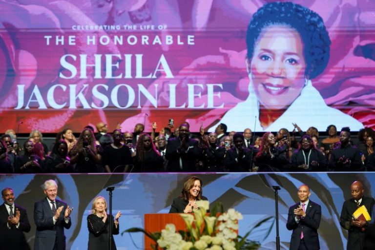 Harris on Thursday delivered a eulogy at a Houston service for the late Rep. Sheila Jackson Lee (D-Tex.), who died last month at age 74 after being diagnosed with pancreatic cancer.