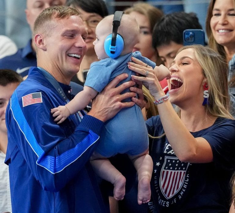 No, I don’t even think he was awake for my races. But I think the special part was for a sport that has meant so much for me for 22 years, to be able to bring him into those moments with me, to be able to hold him on deck and for the medals here — gold, silver, it doesn’t really matter what they represent — I know my son got to watch me win those. … And he can take it and ding it up, bring it to show-and-tell, if that’s still a thing nowadays.