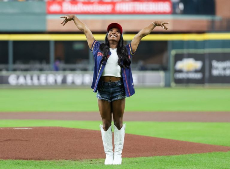 However, the 11-time Olympic medalist is also growing familiar with the MLB pitching mound. On Friday, Biles threw out the first pitch ahead of the Houston Astros’ game against the Kansas City Royals. Biles, who grew up in Spring, Texas, in the Houston metropolitan area, was among the Houston-area Olympians honored Friday. However, she got another opportunity to throw out a first pitch.