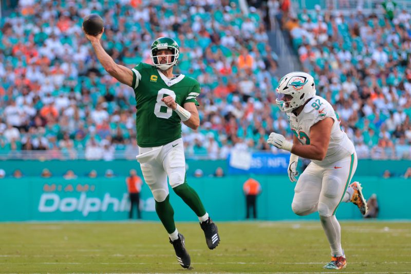 Before Sunday’s game, the most yards Rodgers threw for in a Jets jersey was 294 in a 23-20 loss to the Bills on Oct. 14.