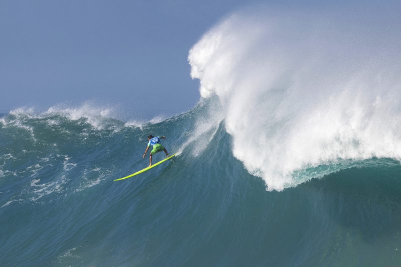 The contest was held for only the 11th time since its inception. That’s because waves must reach at least 40 feet to meet competition criteria.