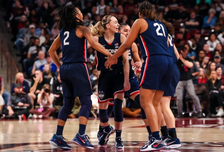 The Huskies are the first on the board first thanks to a pull up 3-pointer in transition from star guard Paige Bueckers. If UConn wants to snap South Carolina’s 71-game home win streak and pick up a signature win on Sunday, the Huskies will need a big game from Bueckers.