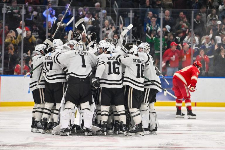 Aidan Thompson and Jared Wright scored and Matt Davis made 44 saves for Denver (31-12-1), which was trying to become the first team to win back-to-back national titles since Minnesota-Duluth in 2018 and ’19.