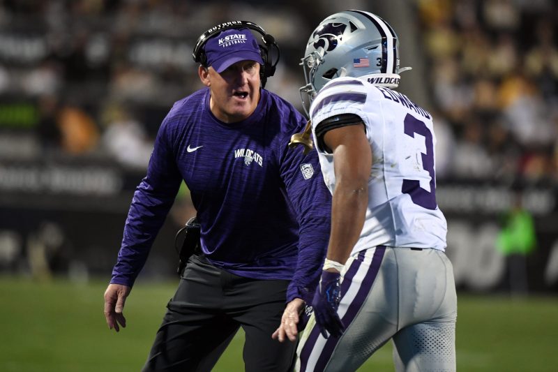 Kansas State coach Chris Klieman said during his halftime interview that Wildcats’ star running back Dylan Edwards is out for the rest of the game due to an injury. Edwards sustained his injury on a punt return early in the game and did not record a snap on offense.