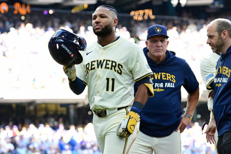 After becoming the first player in MLB history with three hits in two innings of a postseason game, Milwaukee Brewers star Jackson Chourio was removed with a hamstring injury after beating out an infield single.