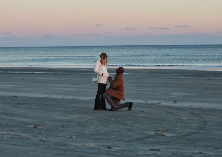 He settled on a sunset proposal on Kiawah Island, prompting a long drive Saturday to the frigid beach. He described awkwardly trying to dissuade her from wearing gloves when they walked out on the sand, and positioned someone to take a photograph of the event.